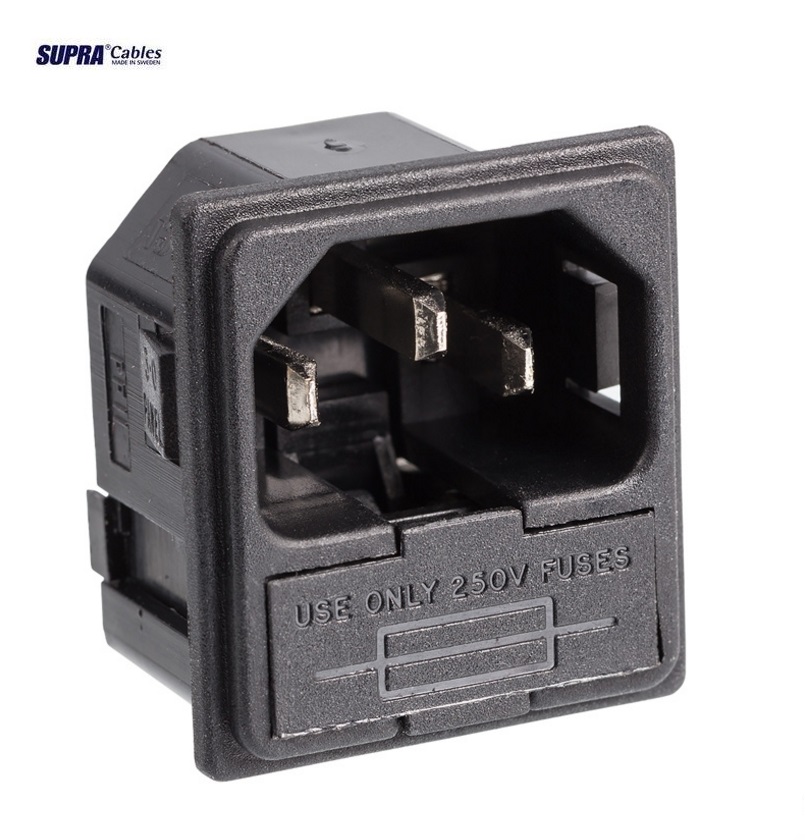 SUPRA MCH-10 MALE WITH FUSE IEC-konektor je určený pro zabudování do chassis - 13A