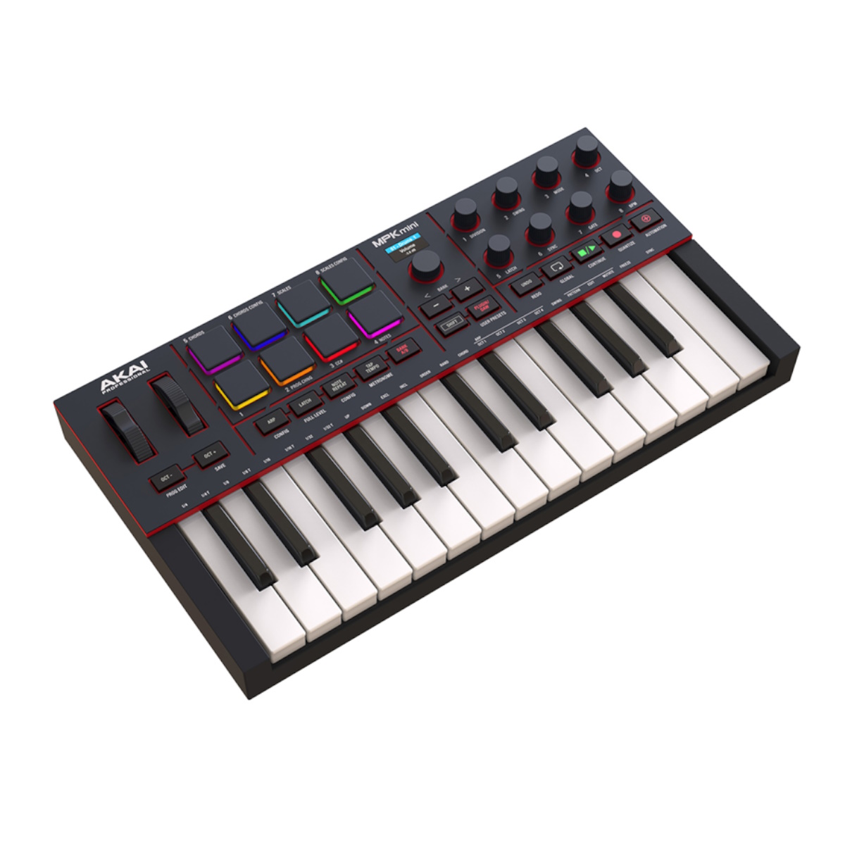 MPK Mini IV staví na třetí generaci klaviatury s jemnější odezvou a vyšší citlivostí na dynamiku úhozu. Přesné kolečko Pitch a Modulation wheel nabízejí lepší hudební ovládání během živého hraní i ve studiu. Kvalitní pady s RGB podsvícením a tlakovou citlivostí zajišťují věrnou odezvu pro sekvencování beatů a spouštění smyček.