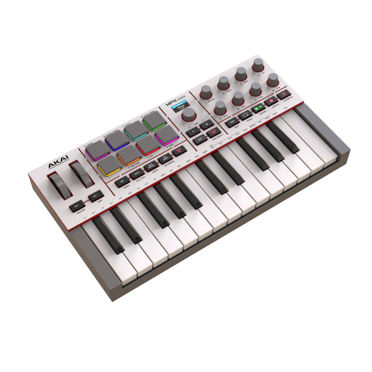 MPK Mini IV staví na třetí generaci klaviatury s jemnější odezvou a vyšší citlivostí na dynamiku úhozu. Přesné kolečko Pitch a Modulation wheel nabízejí lepší hudební ovládání během živého hraní i ve studiu. Kvalitní pady s RGB podsvícením a tlakovou citlivostí zajišťují věrnou odezvu pro sekvencování beatů a spouštění smyček.