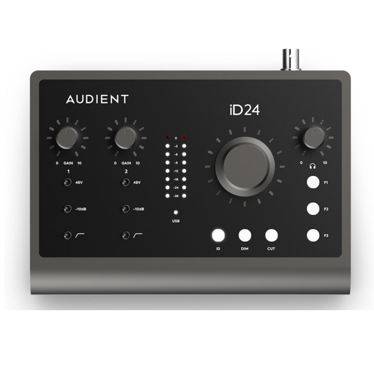Představujeme iD24, audio rozhraní vytvořené pro producenty a inženýry. Díky dvěma mikrofonním předzesilovačům Audient Console, špičkovým převodníkům ve své třídě a intuitivnímu rozložení, iD24 bez námahy kombinuje úžasný zvukový výkon se snadným používáním. Přidejte k tomu profesionální funkce, jako jsou symetrické Inserty, rozšiřitelnost ADAT a přizpůsobitelné ovládání monitoru, iD24 umožňuje dosáhnout výsledků ve studiové kvalitě snadněji než kdy předtím.