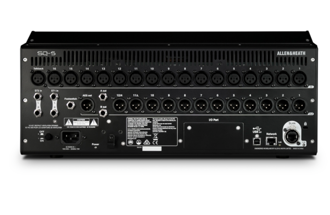 Mixážní pult SQ-5 je vybaven všemi vstupy a výstupy pro okamžitou práci. Díky “chytrému” SLink portu jsou podporovány již existující racky, expandéry a stage boxy (AB168, AR2412, AR84 - pouze 48kHz, a nebo DX168 se kterým plně využijete 96KHz technologie), díky tomu je rozšíření fyzických vstupů a výstupů velice snadné. SQ je možné dokonce připojit do dalšího SQ nebo dokonce systému dLive.