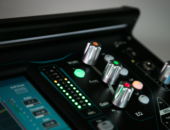 - LCD displeje pro barevné rozlišení a jméno na každém kanálovém stripu