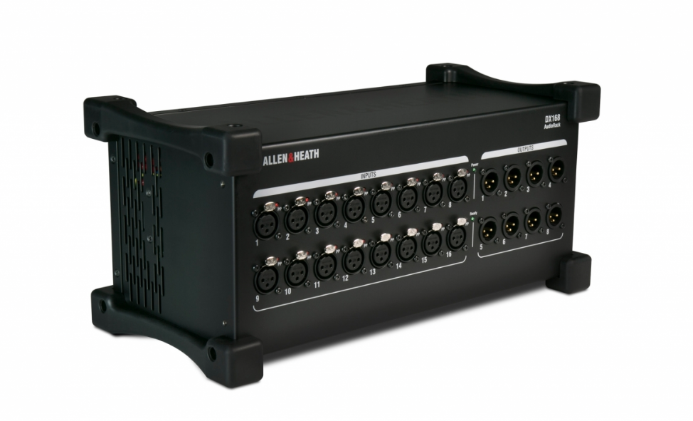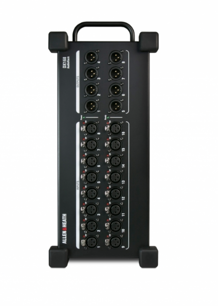 DX168 je robustní přenosný modul profyzické rozšíření počtů vstupů a výstupů v rámci systému dLive (kompatibilní s MixRacky a pulty řady S Class a C Class).