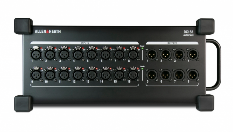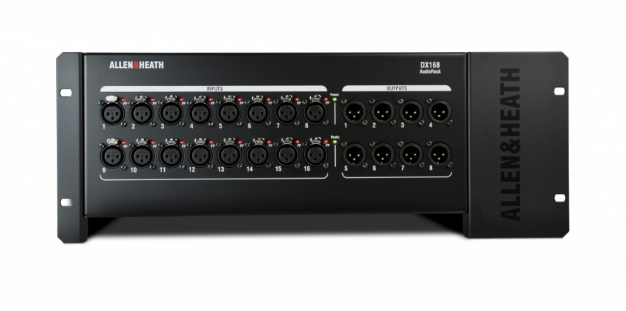 Každý expandér DX168 je vybaven 16 mikrofonními předzesilovači s individuální LED indikací fantomového napájení. Dále je na těle zařízení k dispozici 8 linkových výstupů.