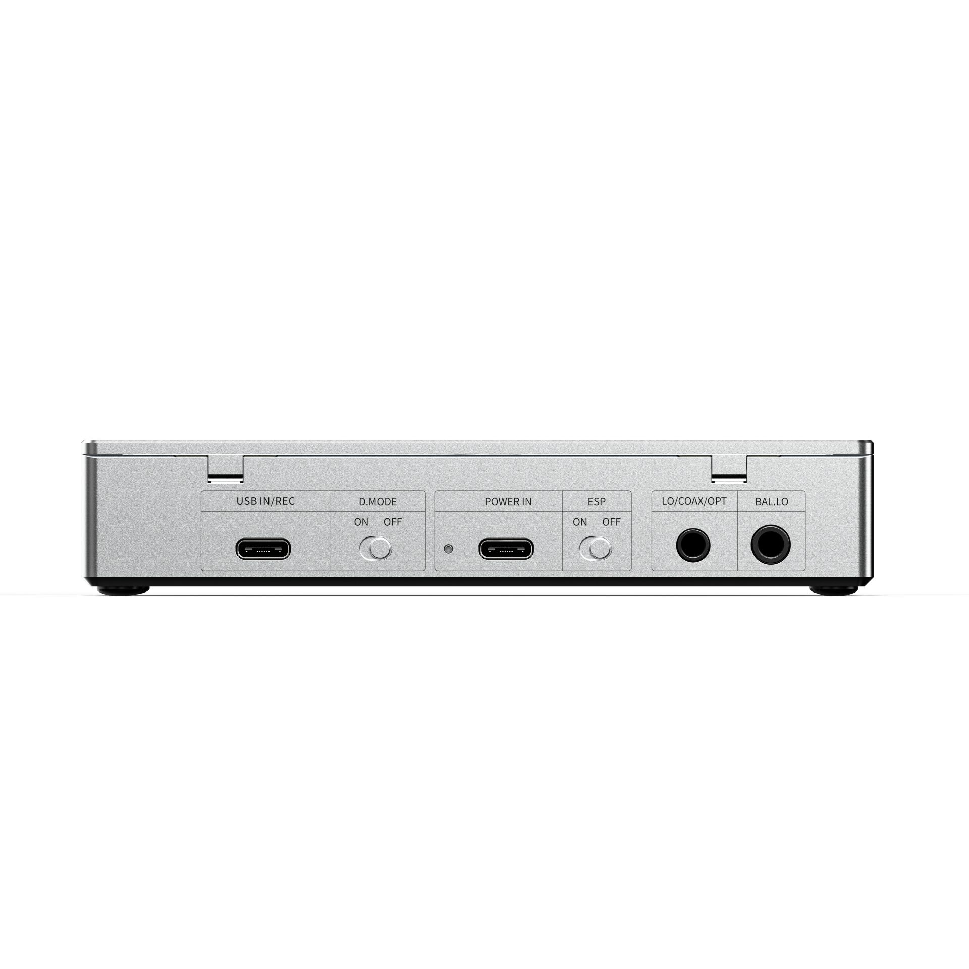 Napájen vysokonapěťovou lithiovou baterií, nabízí single-endové i plně symetrické výstupy a podporuje USB DAC, streamování přes Bluetooth a optický/koaxiální výstupní režimy.