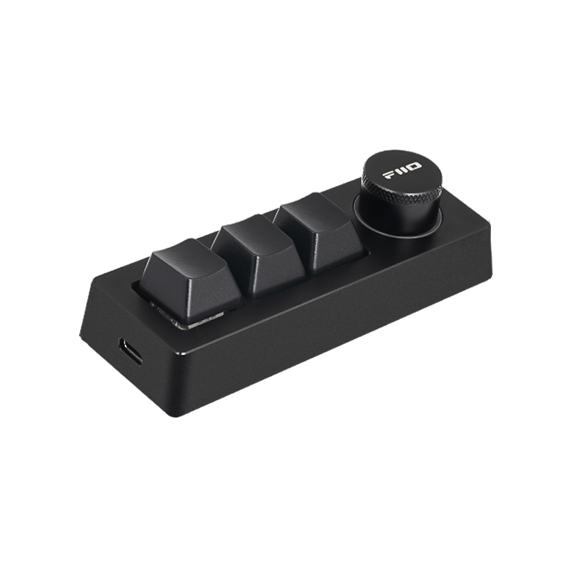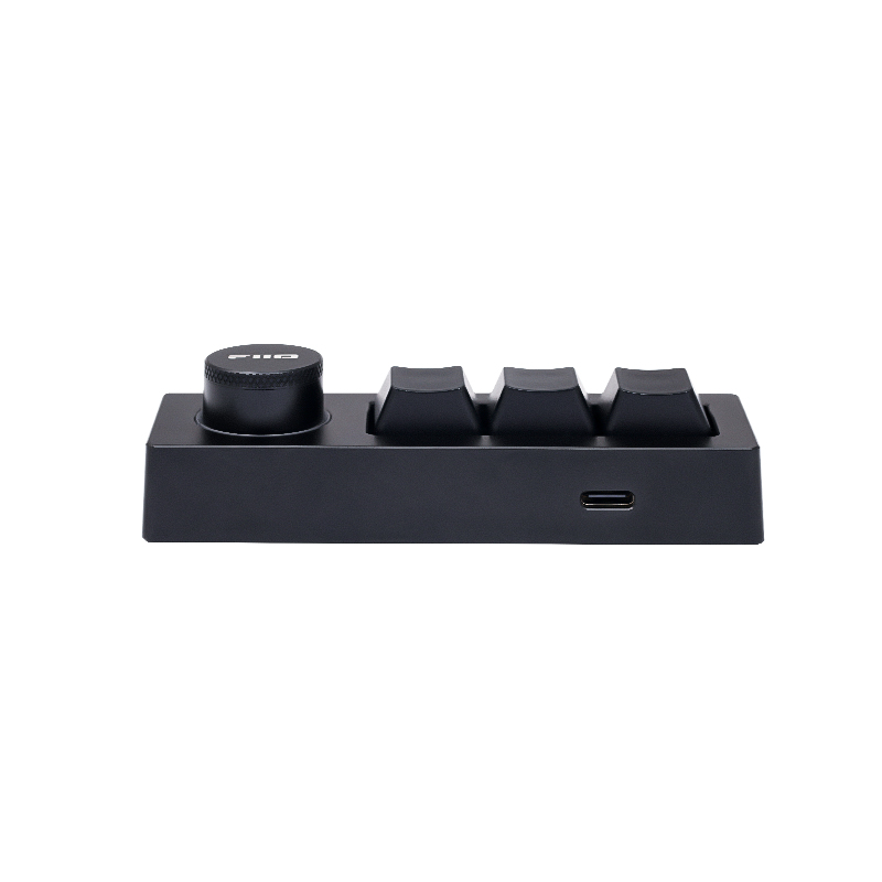 KB1K je programovatelná miniaturní klávesnice se čtyřmi tlačítky a otočným kolečkem. Má primárně sloužit pro ovládání přehrávání hudby, ale nabízí toho mnohem více. Pomocí oficiální FiiO aplikace si můžete funkcionalitu jednotlivých tlačítek upravit podle libosti a používat tak tuto klávesnici například pro klávesové zkratky nebo makra při práci. Je též kompatibilní se všemi novými FiiO přehrávači.