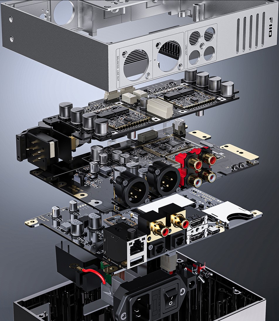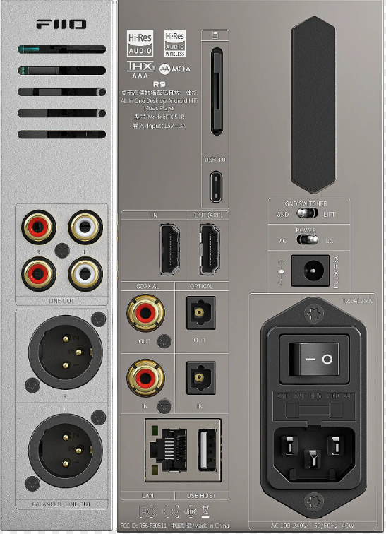 S čipem ES9038PRO již FiiO v minulosti pracovalo v zařízeních M17, Q7, K9 Pro SS a M15S, na kterých nasbíralo mnoho zkušeností, které použili pro jeho implementaci v R9. Čipy jsou zde použity dokonce dva, jeden pro levý a jeden pro pravý kanál. Kombinovány jsou s 8-kanálovým designem zesilovacích čipů nejnovější generace THX AAA 788+, který zajišťuje plně symetrický výstup s výkonem až 7300mW na kanál při 32 ohmech. R9 je postaveno na operačním systému android a tím pádem podporuje veškeré streamovací platformy, které si audiofil může přát.