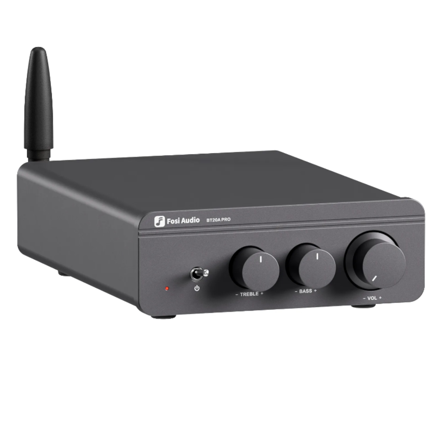 BT20A Pro je dvoukanálový zesilovač třídy D určený pro domácí Hi-Fi soustavy. Je vybavený možností přenosu signálu pomocí Bluetooth 5.0. Bluetooth podporuje kodeky SBC a AAC a funkce Easy Pairing a Alert tone pro snadné párování s vaším zařízením. Kromě bezdrátového přenosu může být signál do zařízení přiveden i klasickým zapojením přes RCA Cinch vstupy. Speaker out výstupy slouží k připojení pasivních nebo aktivních reproduktorů, 3,5 mm výstup Pre-Out pak slouží k zapojení zařízení jako předzesilovače.