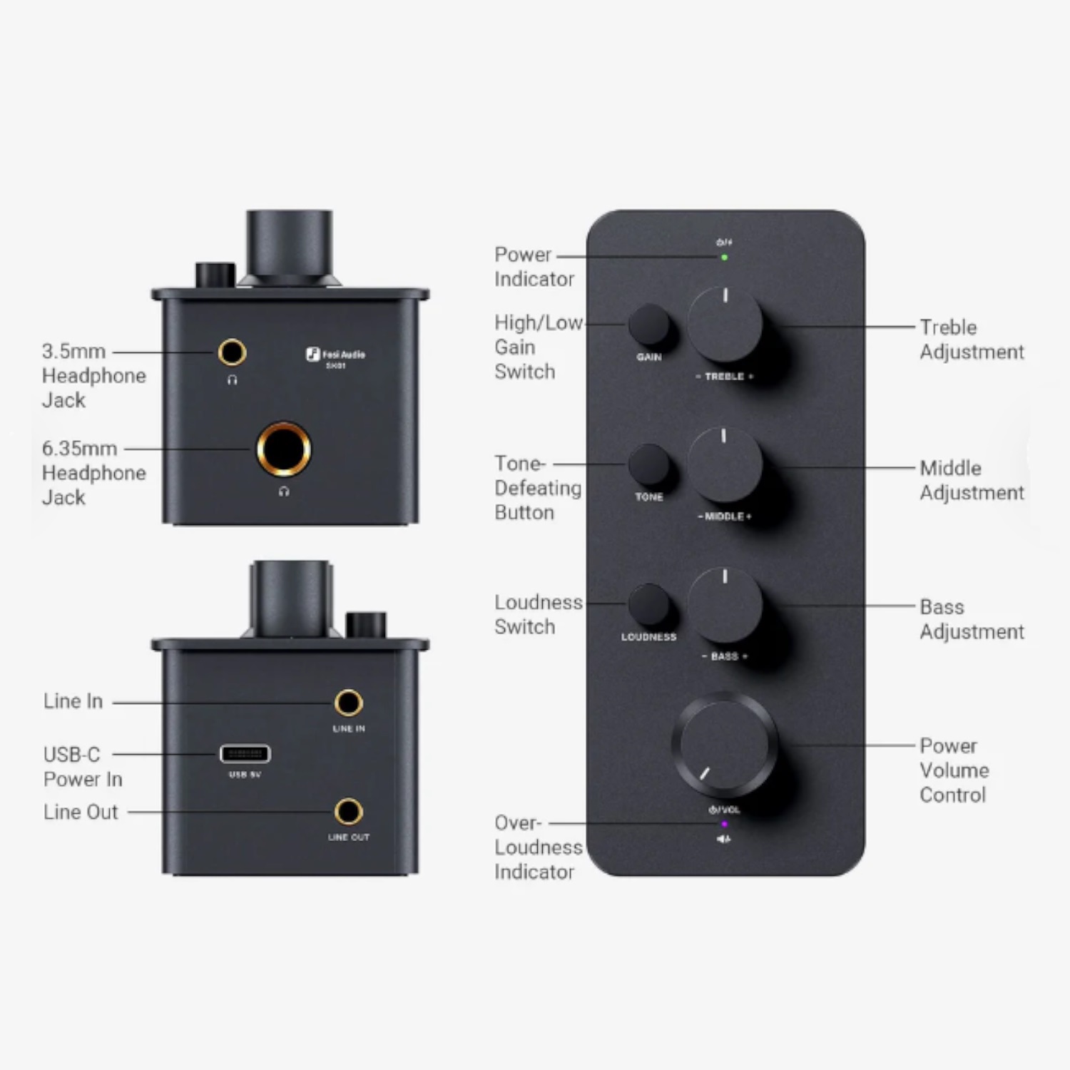 Pomocí třípásmového ekvalizéru najdete ideální balanc mezi basy, středy a výškami přesně podle vašeho gusta. Můžete jím například kompenzovat frekvenční nedostatky vašich sluchátek. Veškeré korekce můžete jednoduše zrušit stisknutím tlačítka