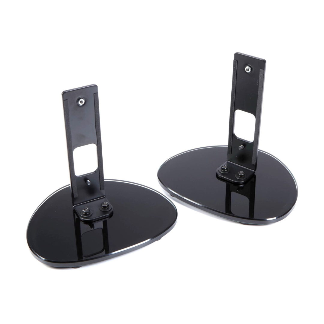Pár policových / stolních stojanů se skleněnou základnou pro reproduktory GoldenEar SuperSat 60.