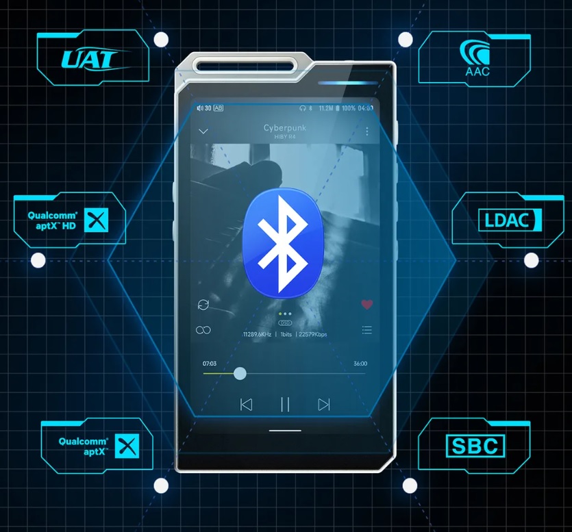Moderní přehrávače se dnes neobejdou bez velmi kvalitního rozhraní pro bezdrátový poslech i příjem dat. Ani ve specifikaci HiBy R4 proto nesmí chybět WiFi pro snadné streamování obsahu z internetu. Kromě toho je možné využít také obousměrný přenos Bluetooth 5.0, umožňující odesílání hudby do sluchátek, ale také příjem dat z externího zdroje (telefonu) pro zpracování v přehrávači.