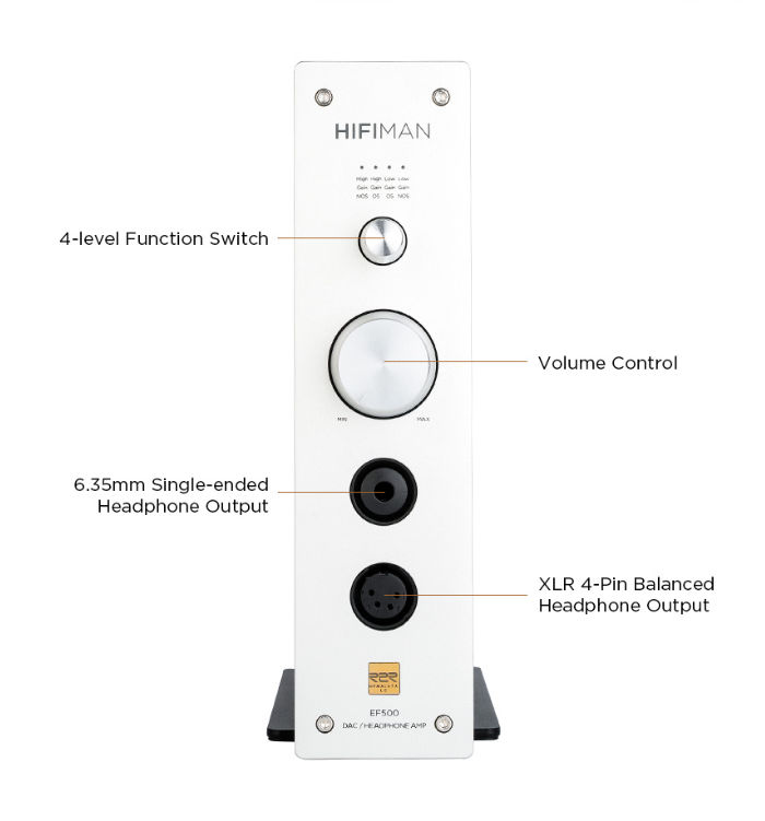 Sluchátkový zesilovač s DA převodníkem HIFIMAN EF500. Všeuměl, který rozehraje vaše sluchátka s nepřekonatelnou přesností a výkonem na rozdávání. Připojte jej do svého zařízení pomocí moderního USB-C nebo digitálního koaxiálu a užijte si detailní zvuk, ať už posloucháte hudbu ze smartphonu, počítače nebo jiného digitálního zdroje. Díky ethernetu můžete také streamovat váš obsah ze síťového úložiště nebo z oblíbených streamovacích aplikací.