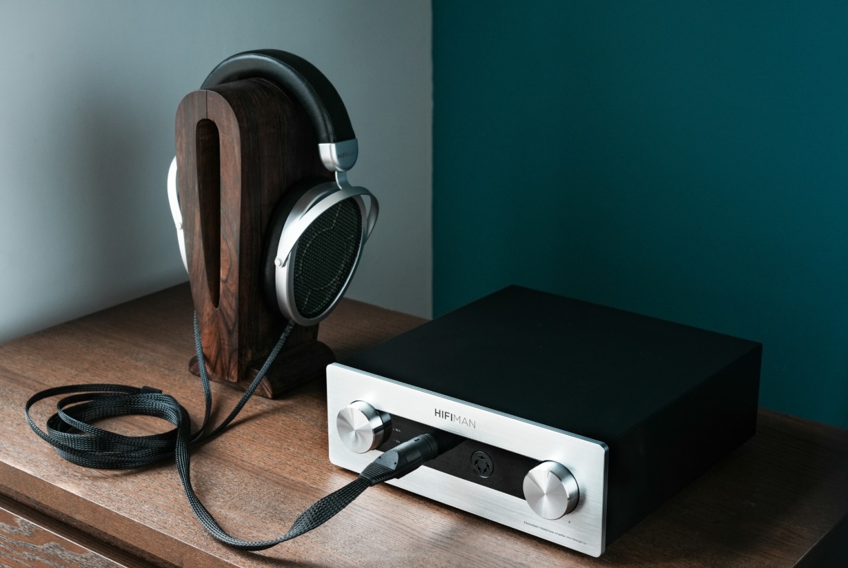 Systém elektrostatických sluchátek a na míru navrženého sluchátkového zesilovače HIFIMAN Mini Shangri-La.