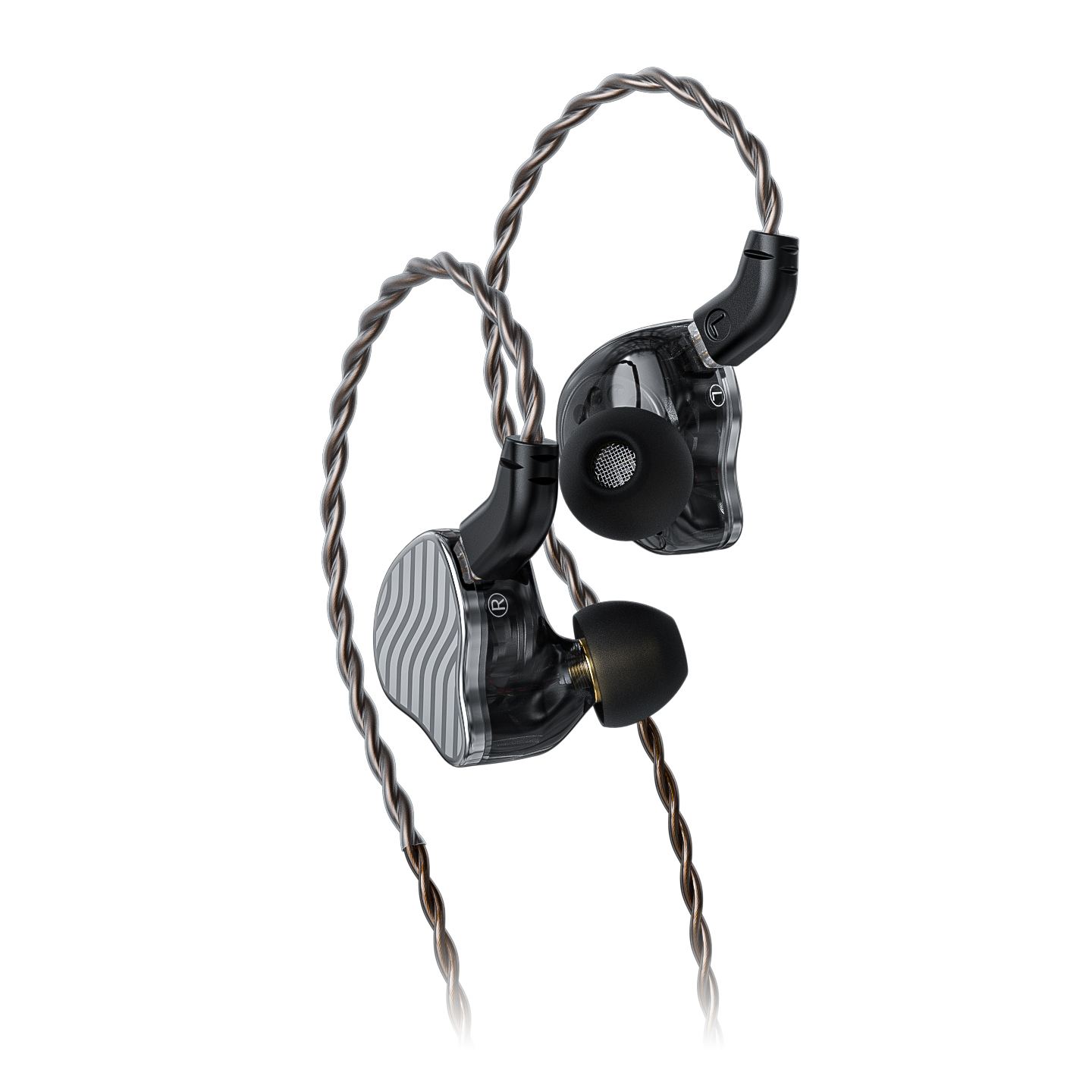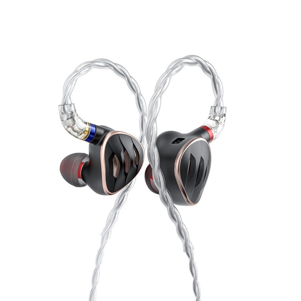 Hi-Fi hybridní IEM s jedním 13,6 mm DLC dynamickým měničem a čtyřmi speciálními Knowles Balanced Armature měniči. Polo-otevřená