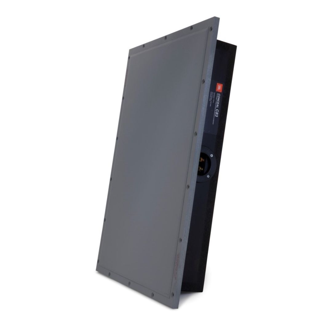 JBL Conceal C83 je vysoce výkonný neviditelný reproduktor s jednopanelovým designem a prvotřídním zvukovým výkonem, který klade důraz na přesnost a detailnost celého zvukového spektra. Je postavený na patentovaném akustickém panelu FidelityGlass™ a kompresně tvarované ozvučnici s extrémně pevným rámem ve spojení s dřevěným lakovatelným krytem. Rám ozvučnice se připevňuje přímo ke konstrukčnímu rámu stěny, zatímco přední strana reproduktoru – panel FidelityGlass™ – má hladký a odolný povrch, který je navržen tak, aby dokonale splynul s povrchem nástěnné plochy, která jej obklopuje. Okraje reproduktoru stačí podlepit pomocí běžných metod a technik pro práci se sádrokartonem. Takto lze dokonale zarovnat spoje mezi reproduktorem a stěnou a vyhladit veškeré povrchové nerovnosti. Po obroušení a náležité přípravě stačí čelní plochu reproduktoru natřít nebo natapetovat tak, aby odpovídal požadované povrchové úpravě stěny. Efektivní tlumení rámu zajišťuje potřebné odstínění reproduktoru od vibrací způsobených během přehrávání. Díky omezení vibrací je pohyb mezi reproduktorem a okolní stěnou minimalizován, což eliminuje možnost prasknutí povrchové vrstvy malby.