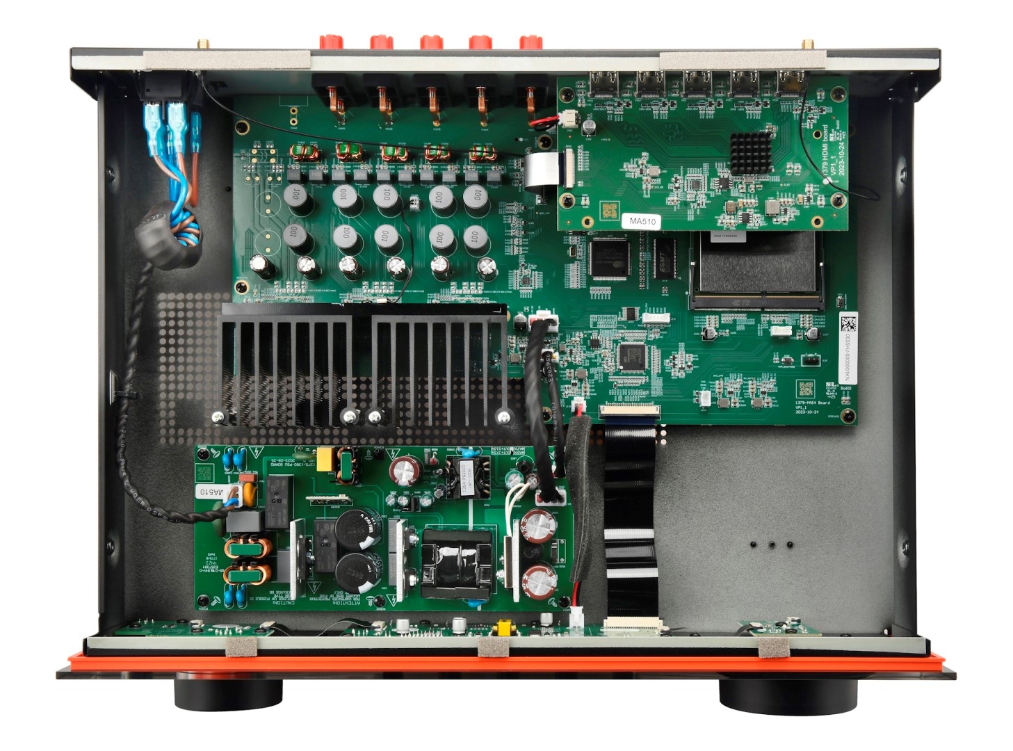 MA510 je navržen na technologické platformě zaměřené na vysoký zvukový výkon zesilovačů třídy D, které napájí každý z pěti kanálů výkonem 75 W RMS, nativním dekódování Dolby a DTS a na 24-bitových D/A převodnících s vysokým rozlišením 192 kHz. Díky 4 vstupům HDMI pro 8K video a 1 výstupu HDMI s podporou zpětného zvukového kanálu eARC umožňuje bezproblémovou integraci s chytrými televizory, herními konzolami, streamováním, set-top boxy atd. Další digitální zařízení lze připojit k optickému nebo koaxiálnímu vstupu a využít můžete i svá analogová zařízení, pro které jsou připraveny dva vstupy s linkovou úrovní signálu s konektory RCA. Ačkoliv je MA510 cílen na zákazníky, kteří nemají ambice rozšiřovat svůj systém na více než 5 kanálů nebo si takový systém nemohou dovolit z prostorových důvodů, neznamená to, že musí zůstat ochuzeni o výbušné nejnižší frekvence, bez kterých si dnes nelze představit žádnou akční filmovou scénu. Díky dvojici výstupů lze k MA510 připojit až dva aktivní subwoofery, které dokáží prostor naplnit tóny z nejnižšího spektra.