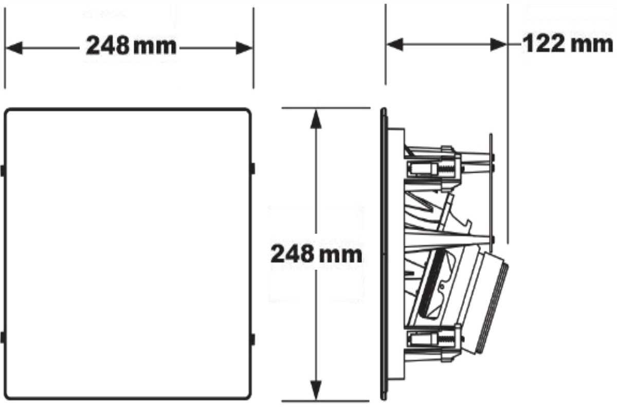 - Rozměry instalovaného reproduktoru včetně mřížky: 248 x 248 mm