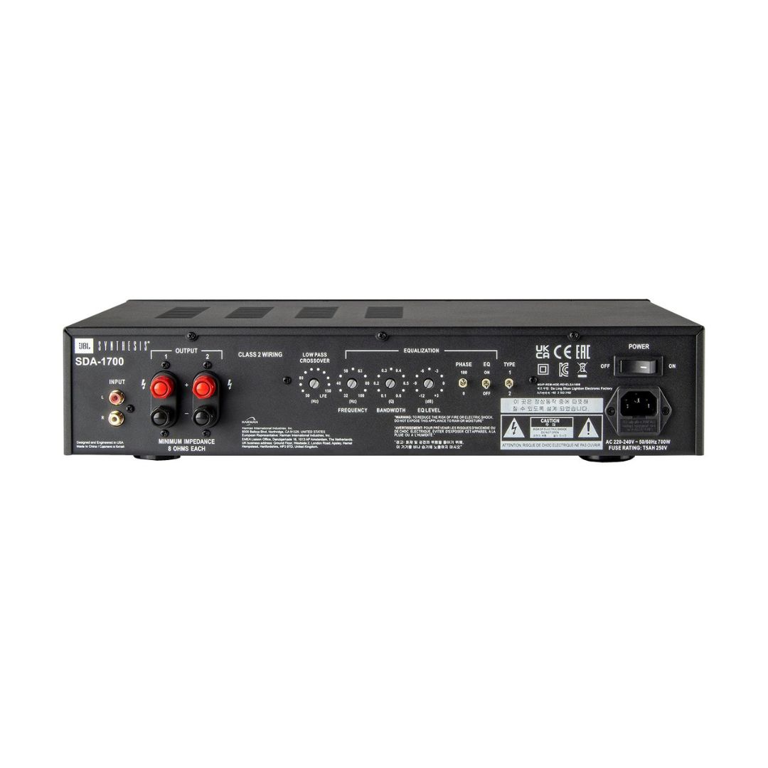 SDA-1700 je instalační zesilovač třídy D optimalizovaný pro spolupráci s vestavnými subwoofery JBL Synthesis SSW-4. Je dimenzován tak, aby zabíral pouze minimální prostor v racku (velikost 2U) a zároveň poskytoval úctyhodný výkon 700 W při minimální impedanci 4 Ω. Spojení SDA-1700 se subwoorem SSW-4 představuje komplexní a vyladěné řešení, které doplňuje portfolio vysoce výkonných architektonických reproduktorů společnosti JBL Synthesis. Dodává dynamické basy a živý realismus vestavným hudebním systémům a systémům domácího kina, které jsou výsledkem komplexních subjektivních a objektivních testů měření.