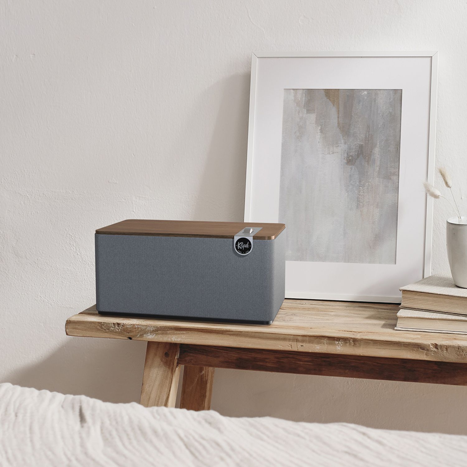 Zahrnutí luxusních materiálů, jako je dýha z pravého dřeva a hmatové spínače a knoflíky, tento stolní reproduktor inspirovaný dědictvím spojuje akustiku a klasiku designové dědictví Paula W. Klipsche s nejnovějšími technologiemi, které jsou dnes k dispozici.