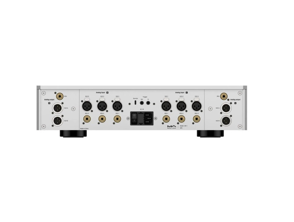 Předzesilovač MP-1 je osazen 3 páry RCA vstupů a 3 páry XLR vstupů s možností nezávisle regulovat hlasitost pro každý vstup. Tím je zajištěno, že všechny připojené vstupy mohou zůstat na stejné úrovni, čímž se zabrání rozdílům v hlasitosti při přepínání mezi různými zdroji zvuku. Na výstupu disponuje MP-1 párem RCA výstupů a dvěma páry XLR výstupů, které lze používat současně a tím připojit až 4 koncové stupně nebo lze hlasitost každého výstupu individuálně upravit.