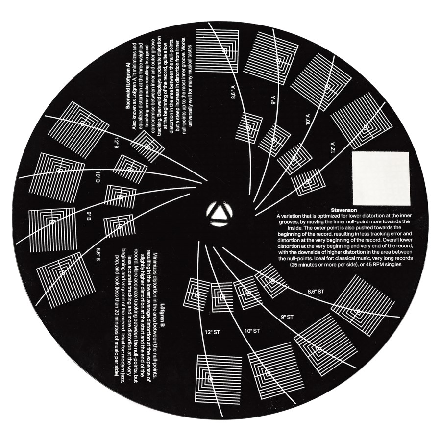Specifikace: Šablona pro správné nastavení přenosky Nastavení offsetového úhlu Offsetový úhel je úhel, o který je vychýlená přenoska vůči spojnici hrotu...