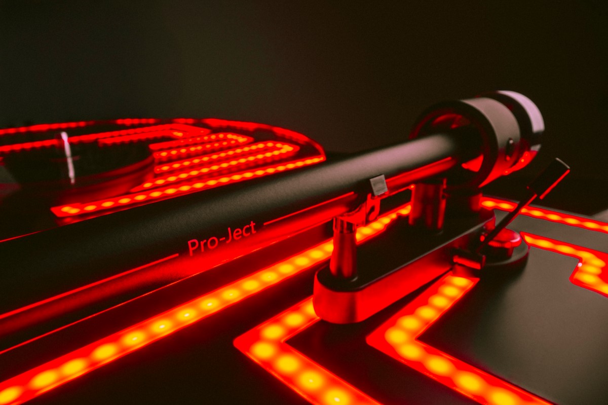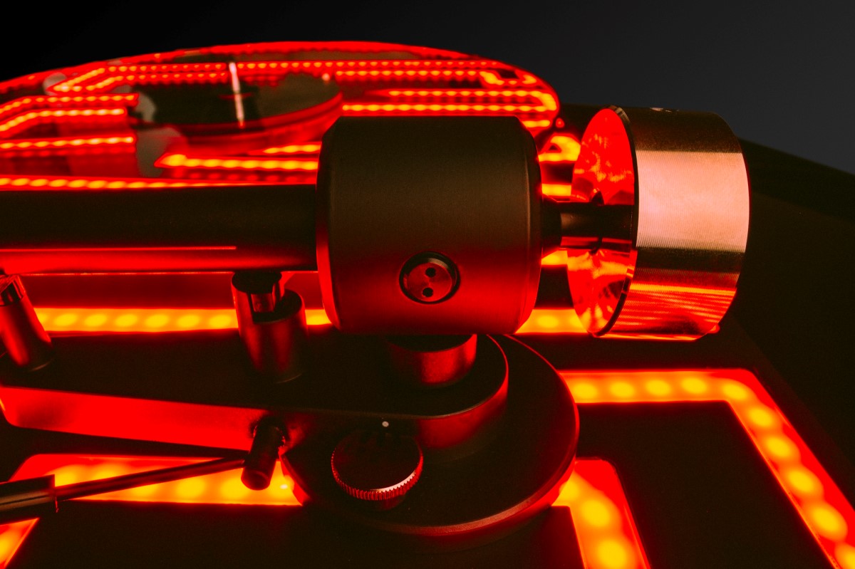 Synchronní motor je napájený elektronikou, která umožňuje elektronické přepínání otáček mezi 33,3 a 45 ot./min. Elektronika zároveň řídí stabilitu rychlosti otáčení. Kolébkový přepínač otáček a vypínač světelného efektu zůstávají prakticky skryté na spodní straně šasi, aby zachovali jedinečnou estetiku gramofonu.