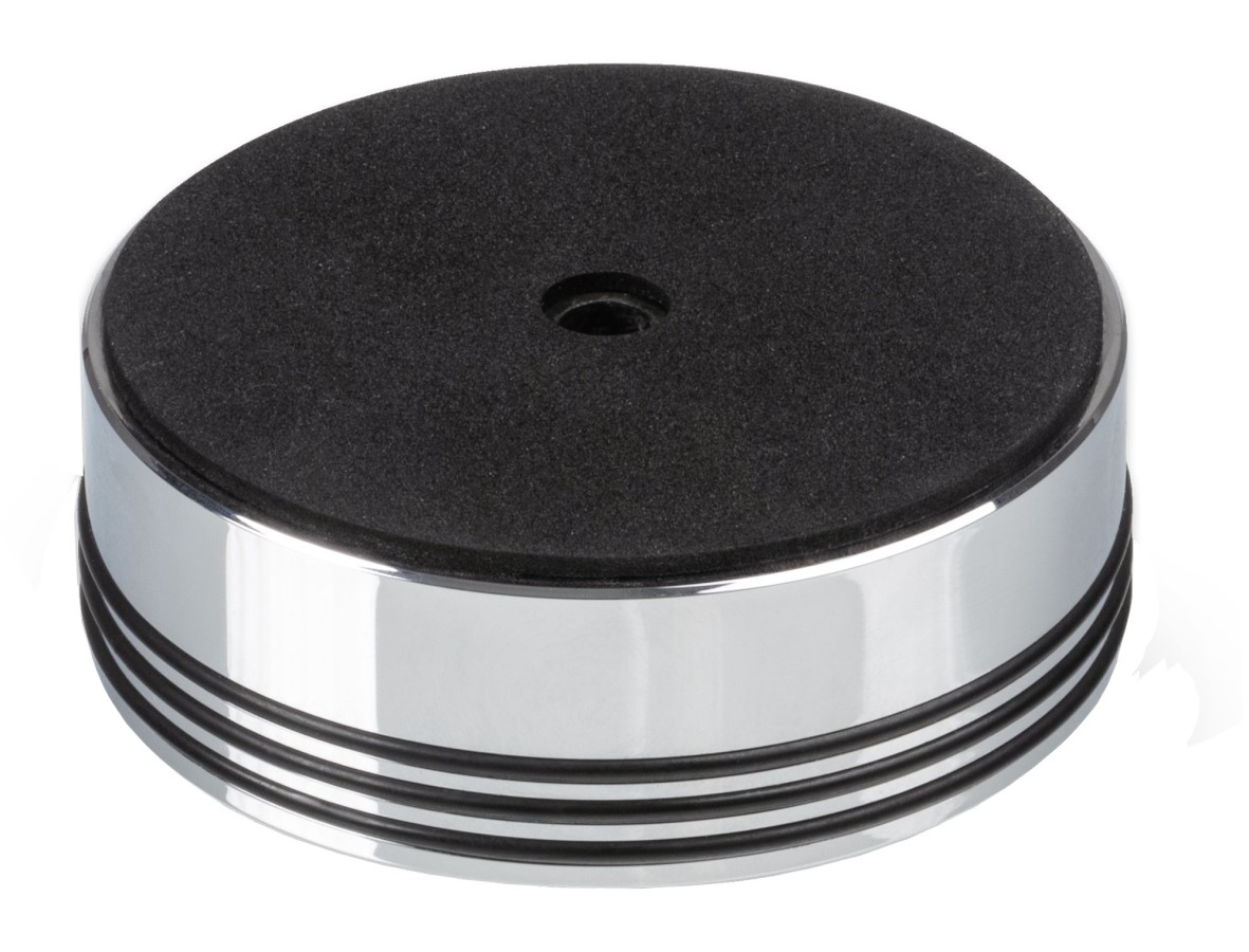 Přítlačné závaží (puk) Record Puck RS je určeno k optimalizaci kontaktu mezi vinylovou deskou a talířem. Umísťuje se při přehrávání na středovou osu talíře do středu desky. Díky své hmotnosti zafixuje a vyrovná desku na talíři, zlepšuje plynulost otáčení a omezuje vibrace i rezonance. Zároveň také optimalizuje přehrávání deformovaných záznamů. Výsledkem je přesnější sledování drážky hrotem přenosky. Účinky jsou okamžité - lepší čitelnost, více detailů a větší dynamický rozsah.
