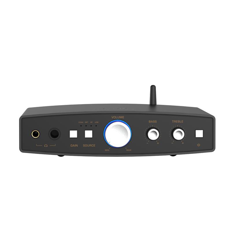 Stolní R2R Ladder DAC a sluchátkový zesilovač. 48 rezistorů na kanál, celkem 192, PCM 384 kHz/32-bit/DSD 256. Výstup 1300 mW.