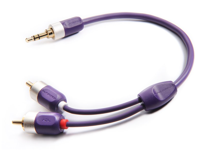 Propracovaný high-endový audio kabel s konektory 1x 3.5 mm stereo jack - 2x RCA.