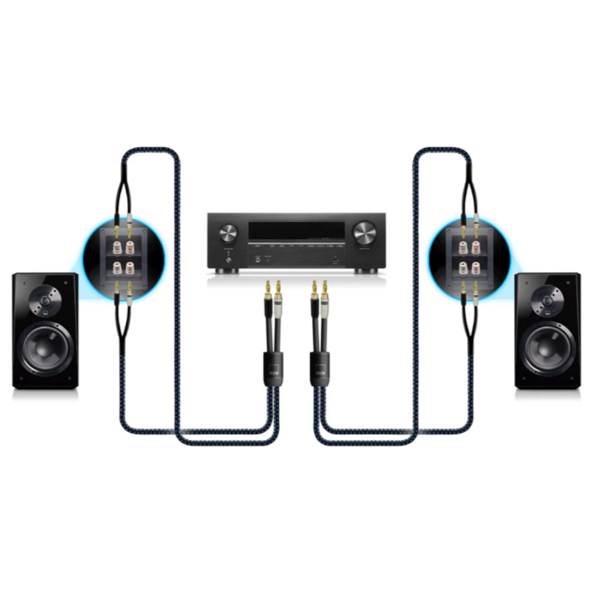 Dvoužilové kabely mohou vylepšit zvuk reproduktorů se dvěma sadami vazebných kolíků snížením impedance a zlepšením izolace signálu. Výsledkem je často přesnější zvukový výstup se sníženým zkreslením a lepším celkovým oddělením vysokých, středních a nízkých frekvencí.