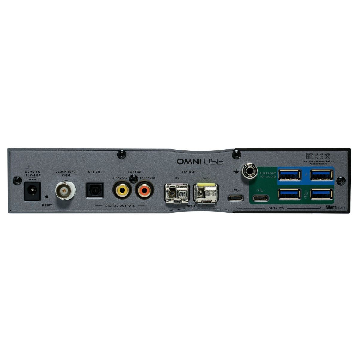 Kromě čistého USB výstupu podporuje OMNI USB PCM 192 kHz/24 bit D-to-D konverzi, s dvěma koaxiálními výstupy (běžné a High Voltage) a optickým výstupem pro připojení analogového DACu nebo staršího AV přijímače. Také nabízí 10 MHz BNC synchronizační vstup, který umožňuje synchronizaci s externím hodinovým referenčním signálem, což pomáhá eliminovat jitter a zlepšuje přesnost přehrávání.