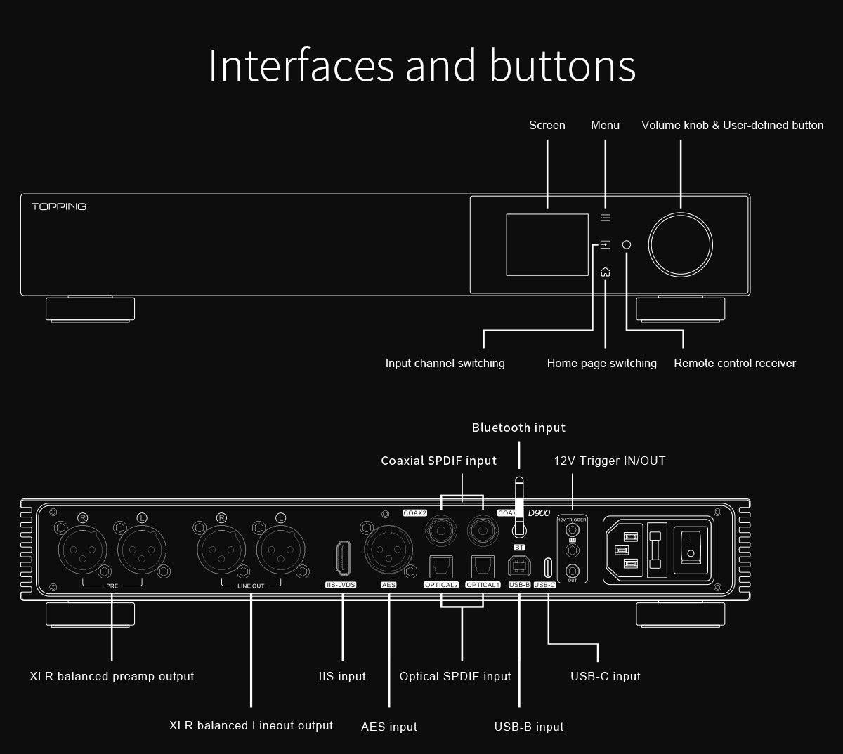 D900 je vybavený aj nezávislým predzosilňovačom, čo rozširuje jeho použitie pri zapojení k výkonovým zosilňovačom a aktívnym reproduktorom.