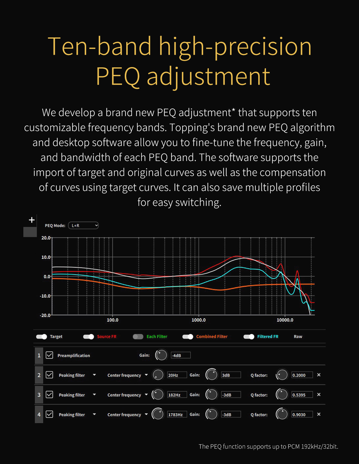 10-pásmový PEQ – pokročilé možnosti ekvalizácie cez desktopový softvér