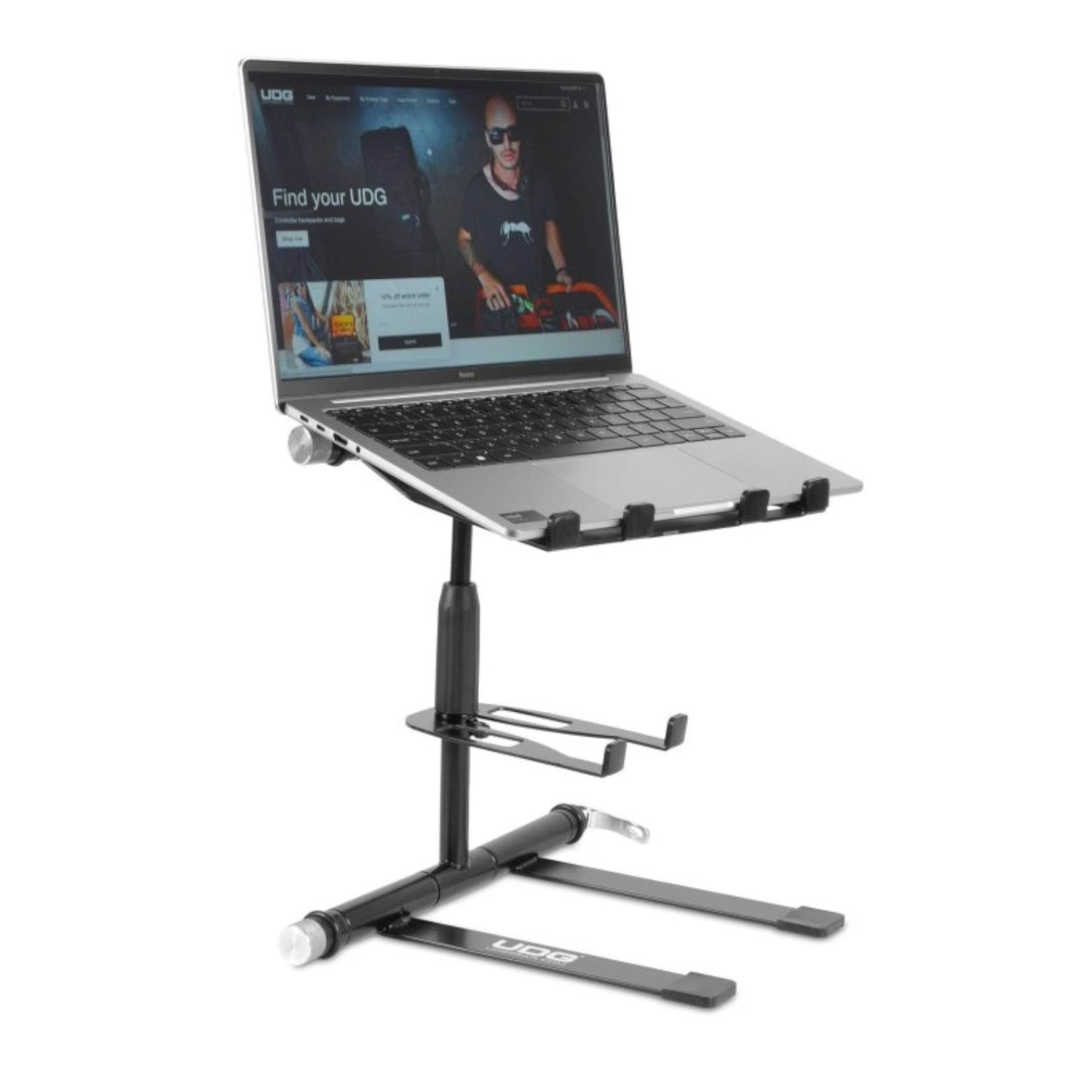 Výškově i úhlově stavitelný stojan s robustní konstrukcí, povrchová úprava z práškově lakované oceli. Díky promyšlenému designu nabízí minimální rozměry ve složeném stavu při zachování vysoké nosnosti až 12 kg pro notebooky s velikostí displeje až 18”. Složení do požadované polohy je velmi rychlé díky aretacím pomocí robustních kovových pák. Výhodou jsou pogumované kontaktní body, aby se vám notebook a příslušenství neodřely. Gumové nožky zajistí pevný kontakt s podložkou.