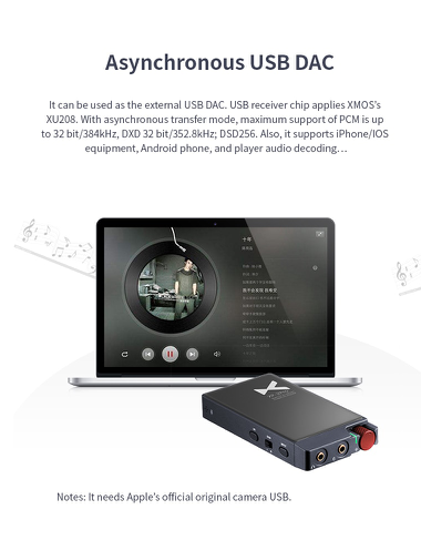 - Asynchronní USB DAC: Lze jej použít jako externí USB DAC. Čip pro příjem USB využívá nový XMOS XU208, pracující v režimu asynchronního přenosu, PCM podporuje až